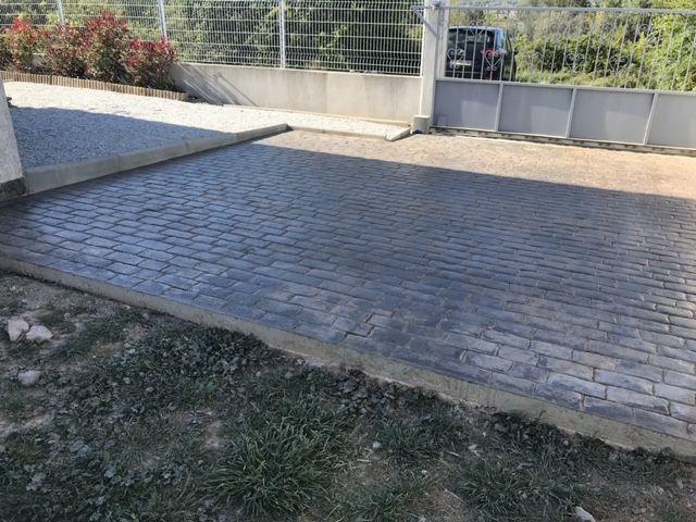 Le béton imprimé est la solution haut de gamme par excellence. Grâce à l'utilisation de durcisseurs colorés et de moules spécifiques, nous créons un sol unique.