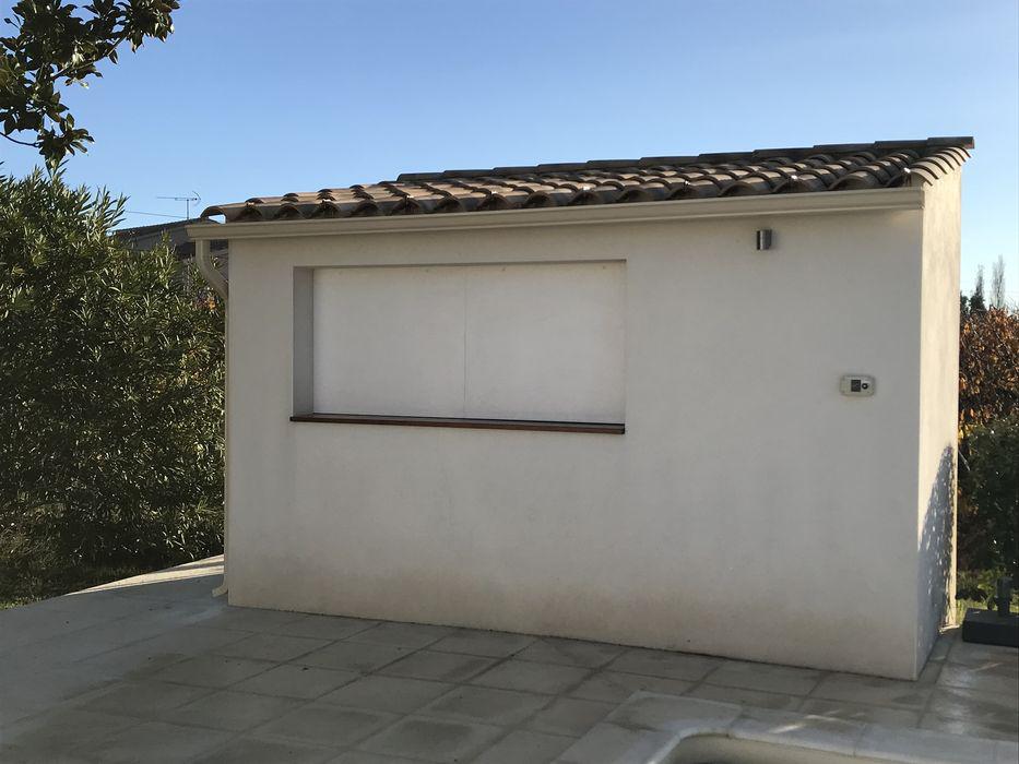 Pour ce projet, le propriétaire a opté pour une finition talochée. Ce travail manuel permet d'obtenir un grain serré et lisse, offrant une esthétique très contemporaine. À Saint-Quentin-la-Poterie, cette finition est idéale car elle limite l'accroche de la poussière et facilite l'entretien de la façade.