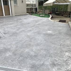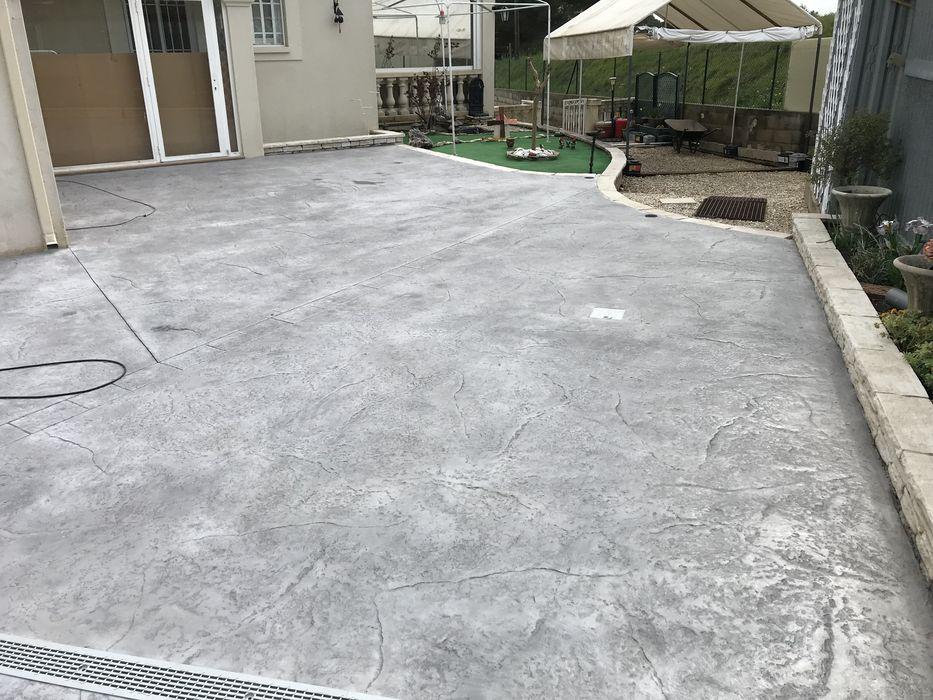 FRANCE REVET GARD a réalisé l'aménagement d'une terrasse en béton décoratif effet pierre à Bezouce. Cette solution technique permet de reproduire fidèlement l'aspect des dalles de pierre naturelle tout en offrant la solidité et la pérennité d'un sol monolithique.