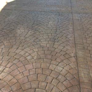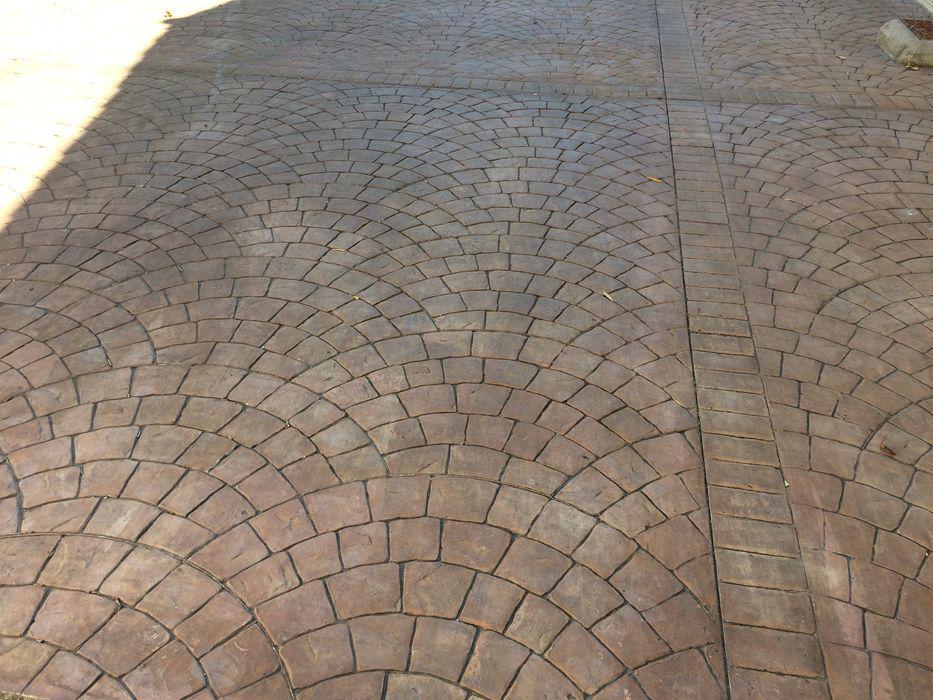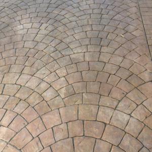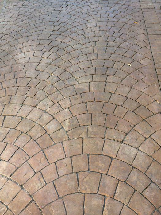FRANCE REVET GARD a réalisé l'aménagement d'une allée à Bezouce avec un béton empreinte motif Palmier (éventail). Cette finition artisanale offre l'élégance des pavés à l'ancienne avec la robustesse d'un sol carrossable monolithique.