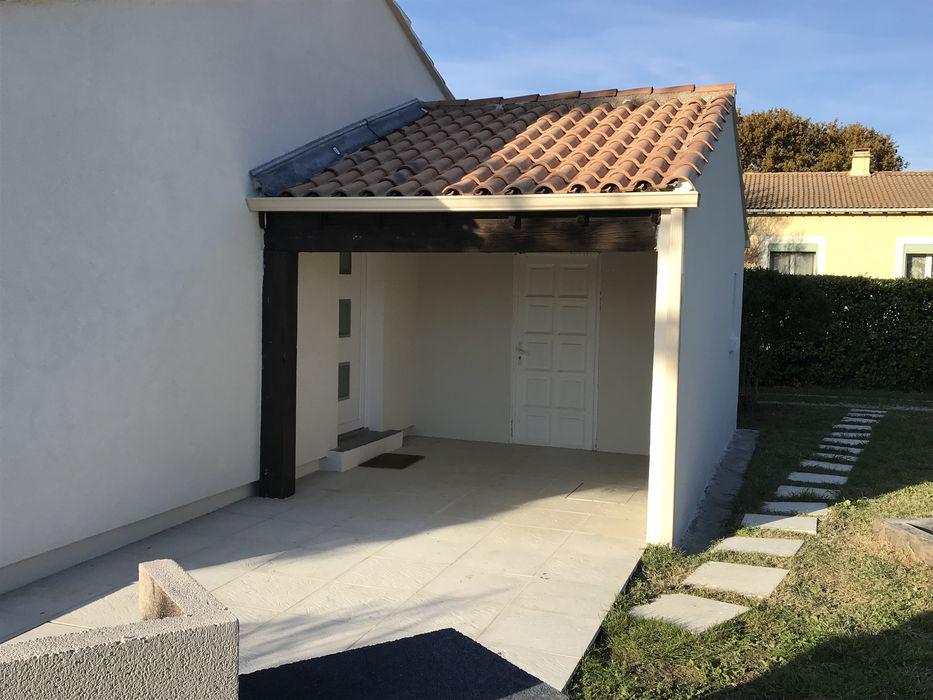 FRANCE REVET GARD a réalisé le ravalement technique d'une maison à structure Phénix située à Saint-Quentin-la-Poterie. L'intervention portait sur le traitement spécifique des joints de plaques et l'application d'un enduit finition talochée pour un rendu moderne et parfaitement uniforme.