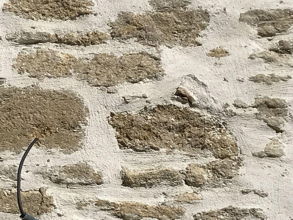 Sur ce chantier à Pujaut, les anciens joints étaient effrités, laissant apparaître des vides qui fragilisaient le mur. Notre intervention a consisté à dégarnir les joints défectueux avant de projeter un mortier de chaux naturelle, garantissant la respiration du support et une esthétique authentique.